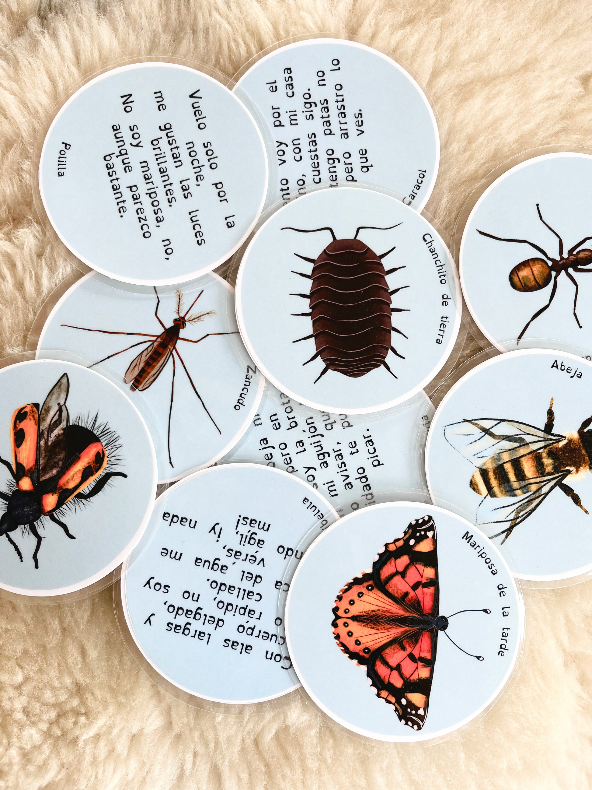 12 fichas ilustradas de invertebrados, que por el reverso traen divertidas adivinanzas.