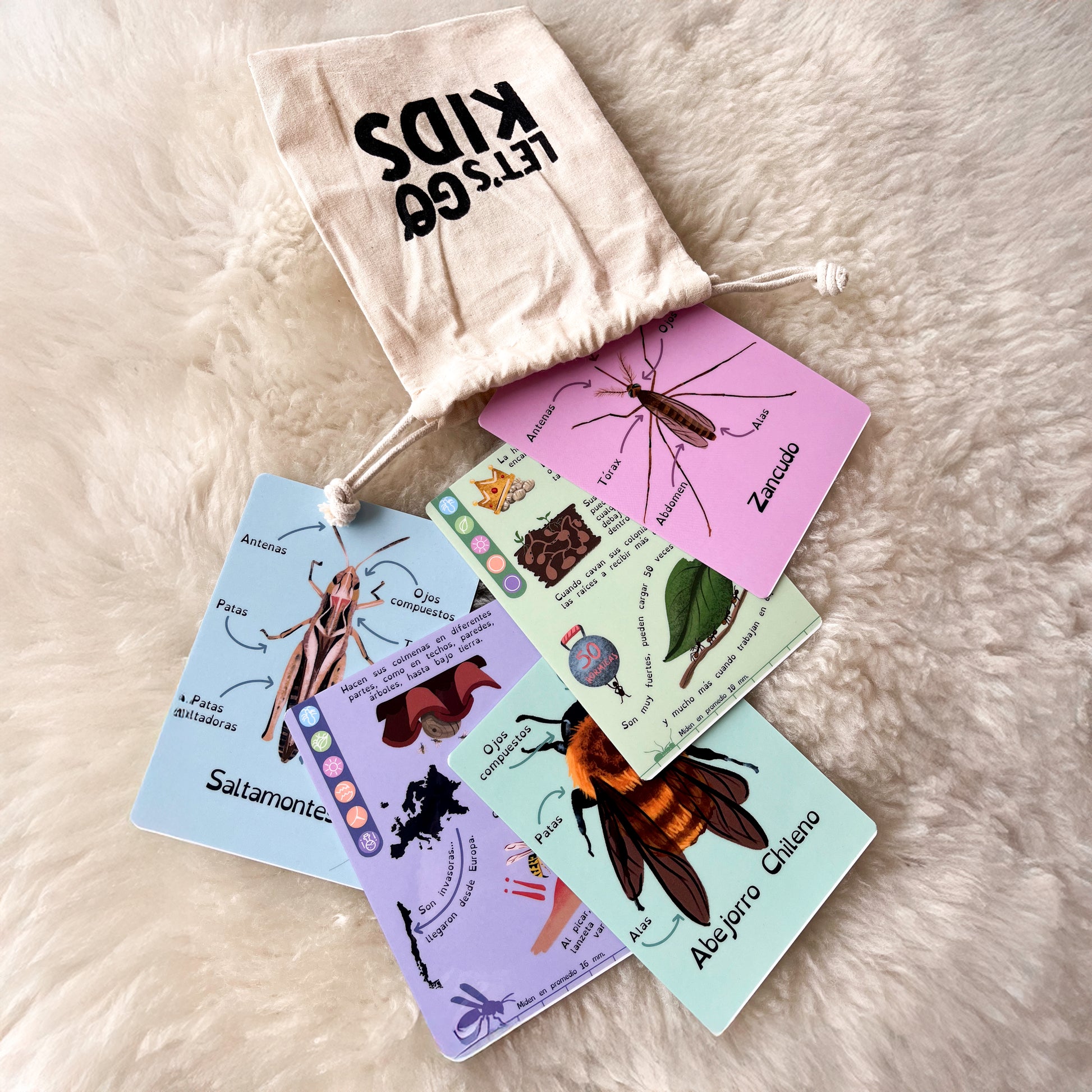 Láminas ilustradas a mano con 10 invertebrados distintos. Están hechas de un material resistente y duradero, ¡perfectas para llevarlas a todas tus aventuras!
